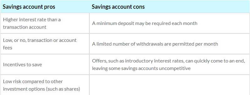 It will have a higher rate of interest than a day-to-day account and typically there are no transaction or account fees. There may be conditions placed on your account – such as how often you deposit money or can make a withdrawal. There may also be incentives, such as bonus interest, to encourage you to save. It’s a great way to accelerate compound interest – on the money you deposit as well as on the interest you have already earned.