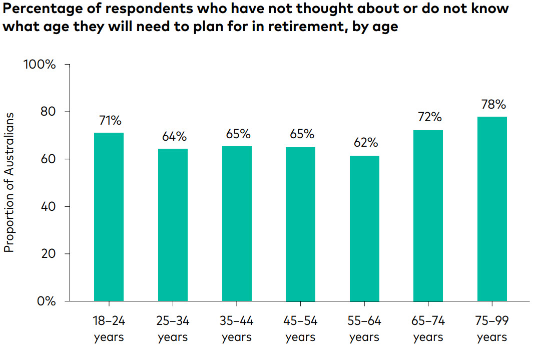 Of the 67% of Australians who have not thought about or don’t know what age they will need to financially plan for in terms of their retirement, many are in the older age brackets.