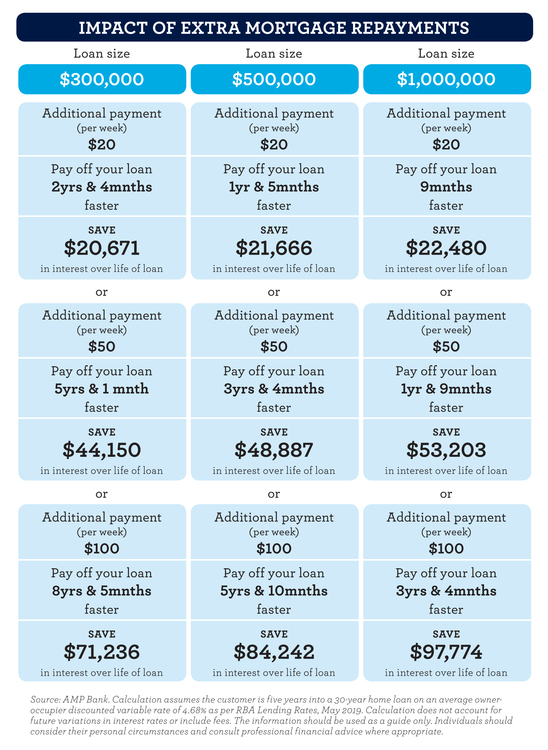 Adding an extra $50 a week can chop $50,000 from a loan of $400,000 – and pay off the loan four years earlier.