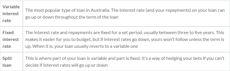 Interest rate options: variable, fixed and split rate home loans